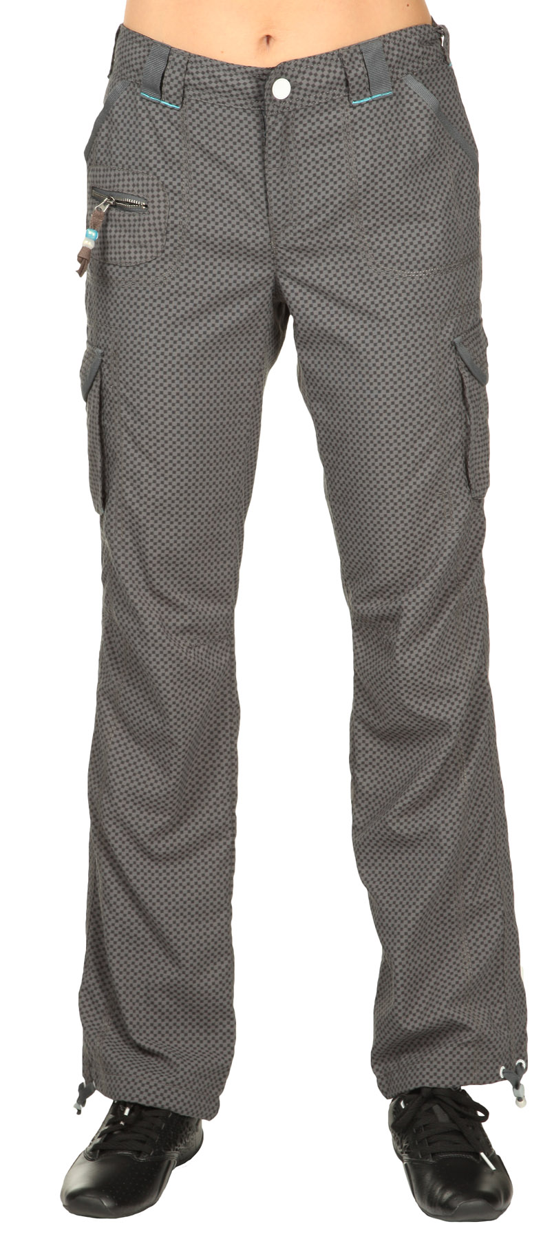 Внизу штанин расположены два шнурка, чтобы утягивать модель по обуви